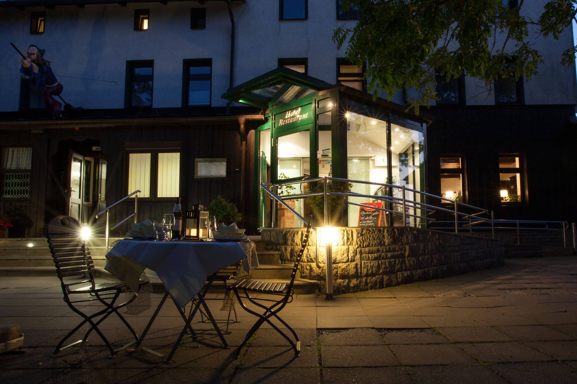 Es ist dieser Augenblick, in dem man auf den Hexentanzplatz tritt und die Welt kurz leiser wird: Das Licht fällt weich auf die Holzbänke, irgendwo klirren Gläser, und aus der Küche zieht der Duft von Gegrilltem und frischer Suppe herüber. Genau dieses Gefühl fängt der Harzer Biergarten „Köhlersiedlung“ ein – bodenständig, herzlich und mit einem Panorama, das man nicht bestellen kann.