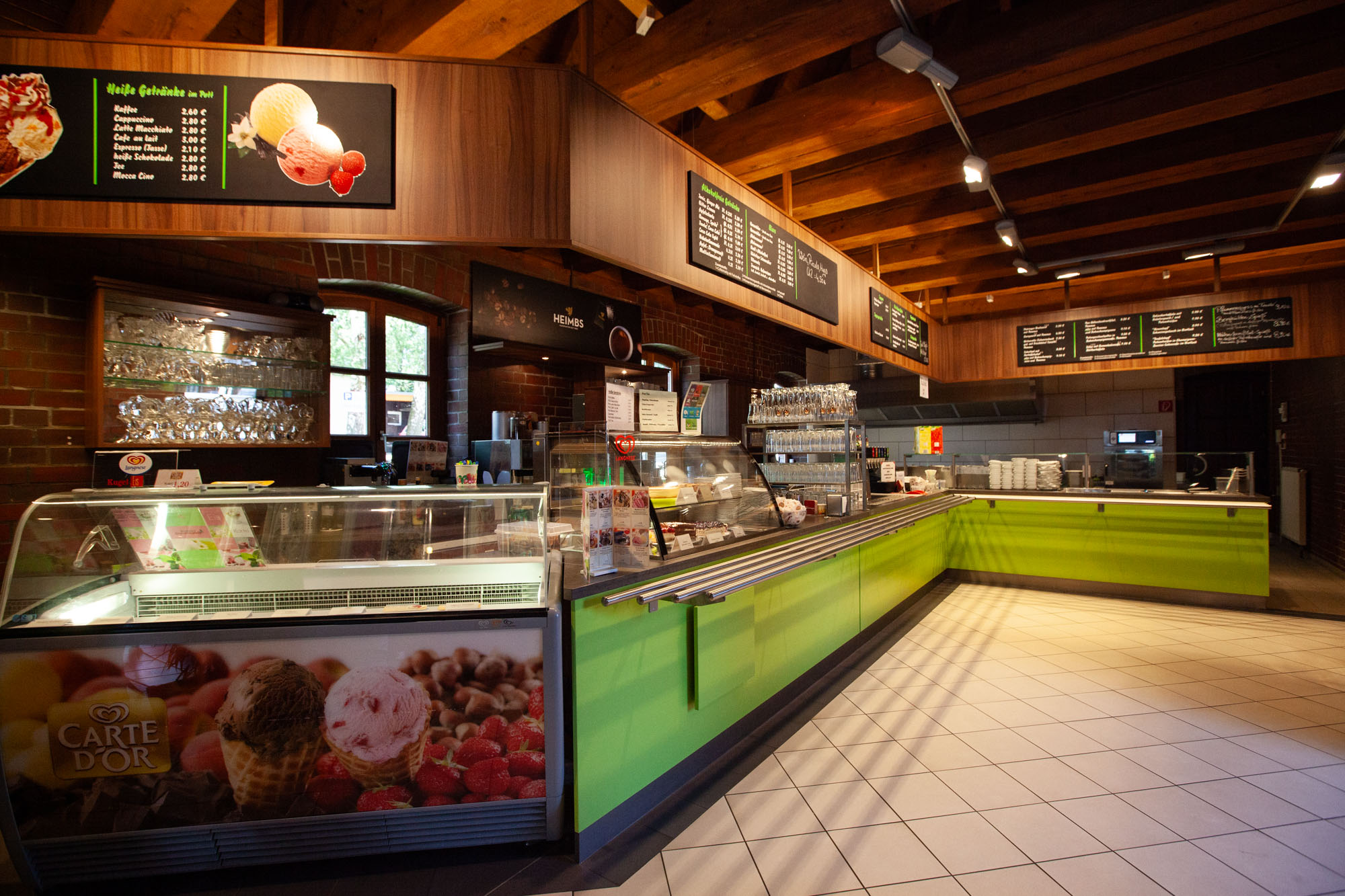 Freuen Sie sich auf eine große Auswahl an heißen und kalten Getränken, hausgemachten Kuchen, kleinen und großen Snacks sowie köstliche Eis- und Kaffeespezialitäten.
